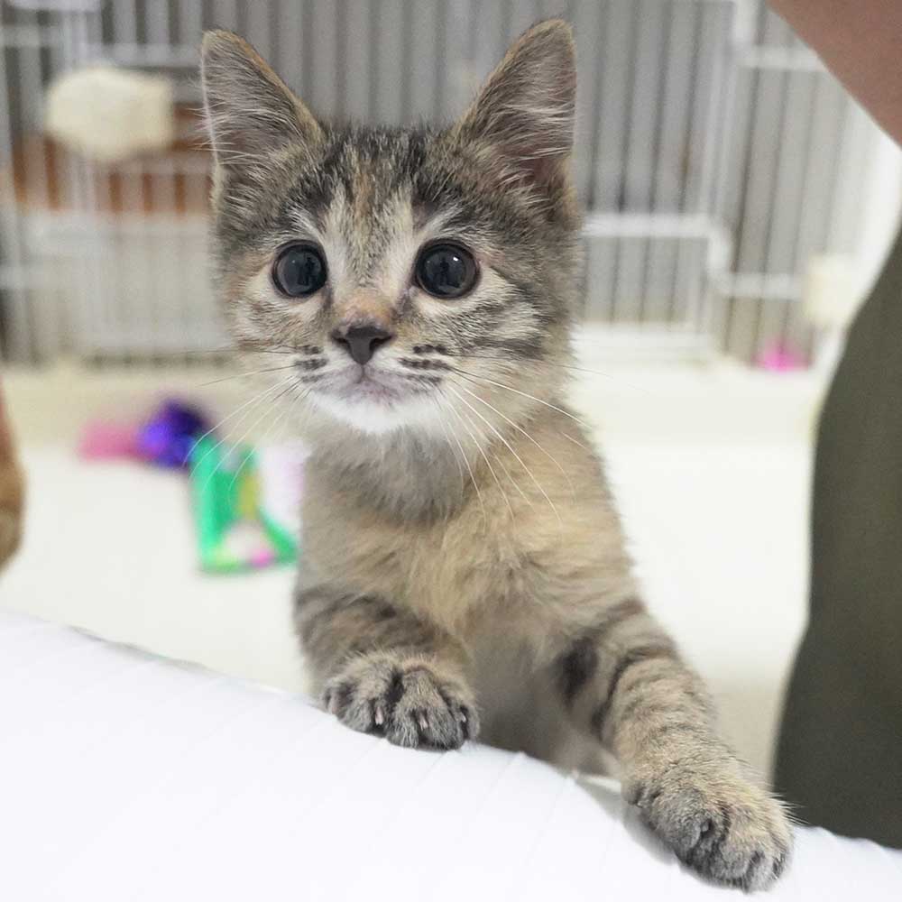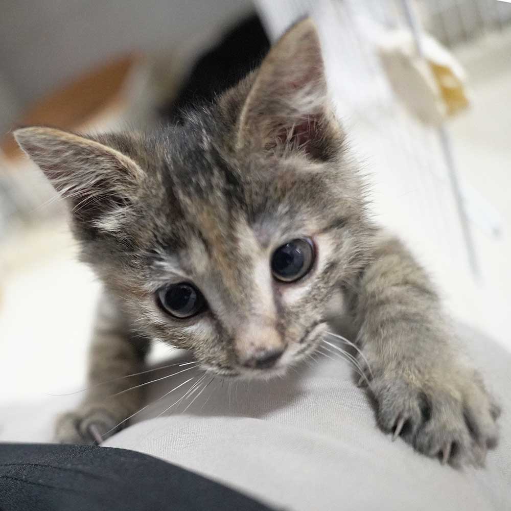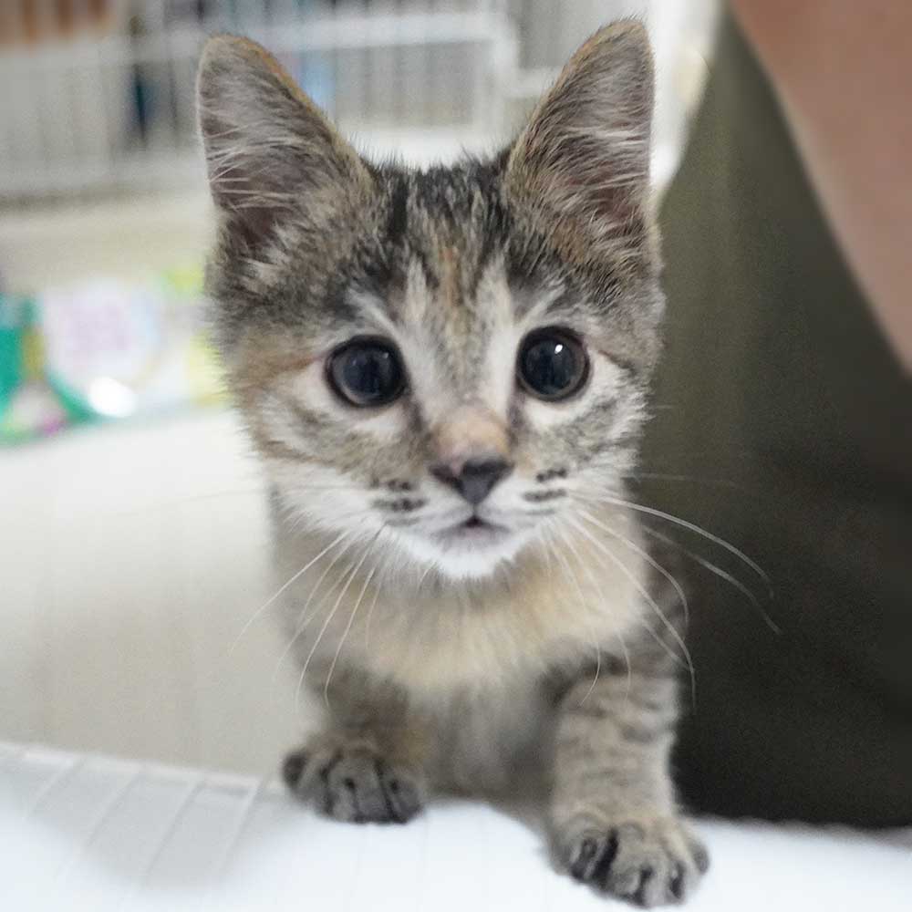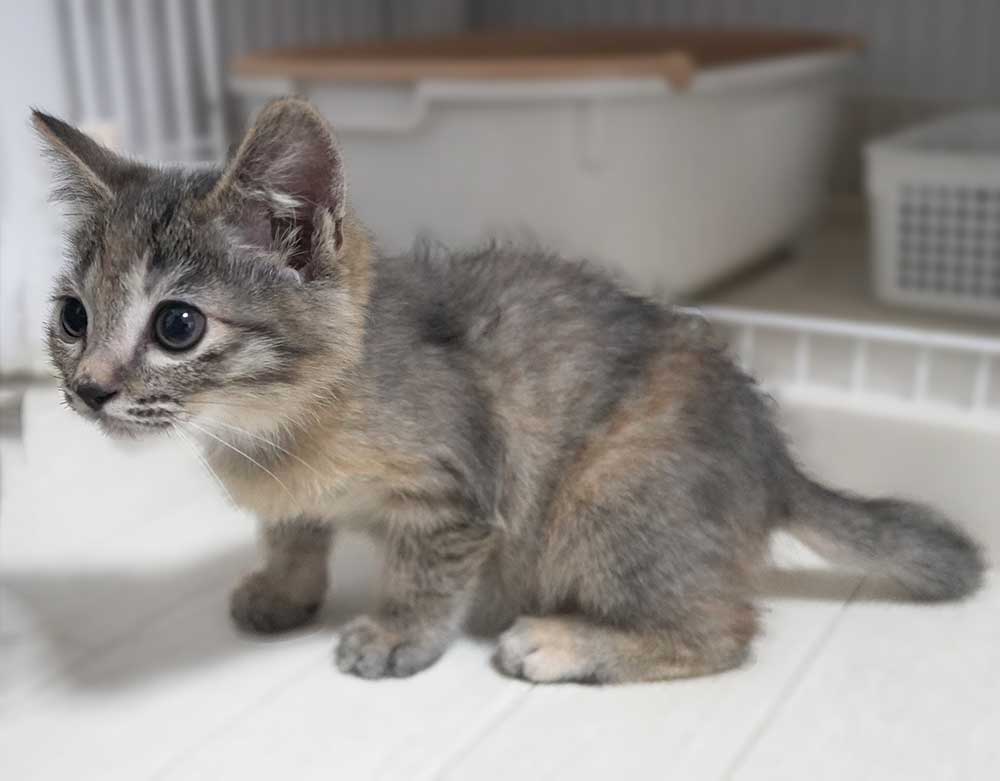 民家の庭先で母猫が子猫を産んだのは確認出来ておりましたが、ある日から母猫がまったく帰ってこなくなり、お腹を空かせて鳴いているところを保護となりました。