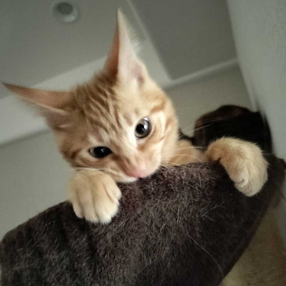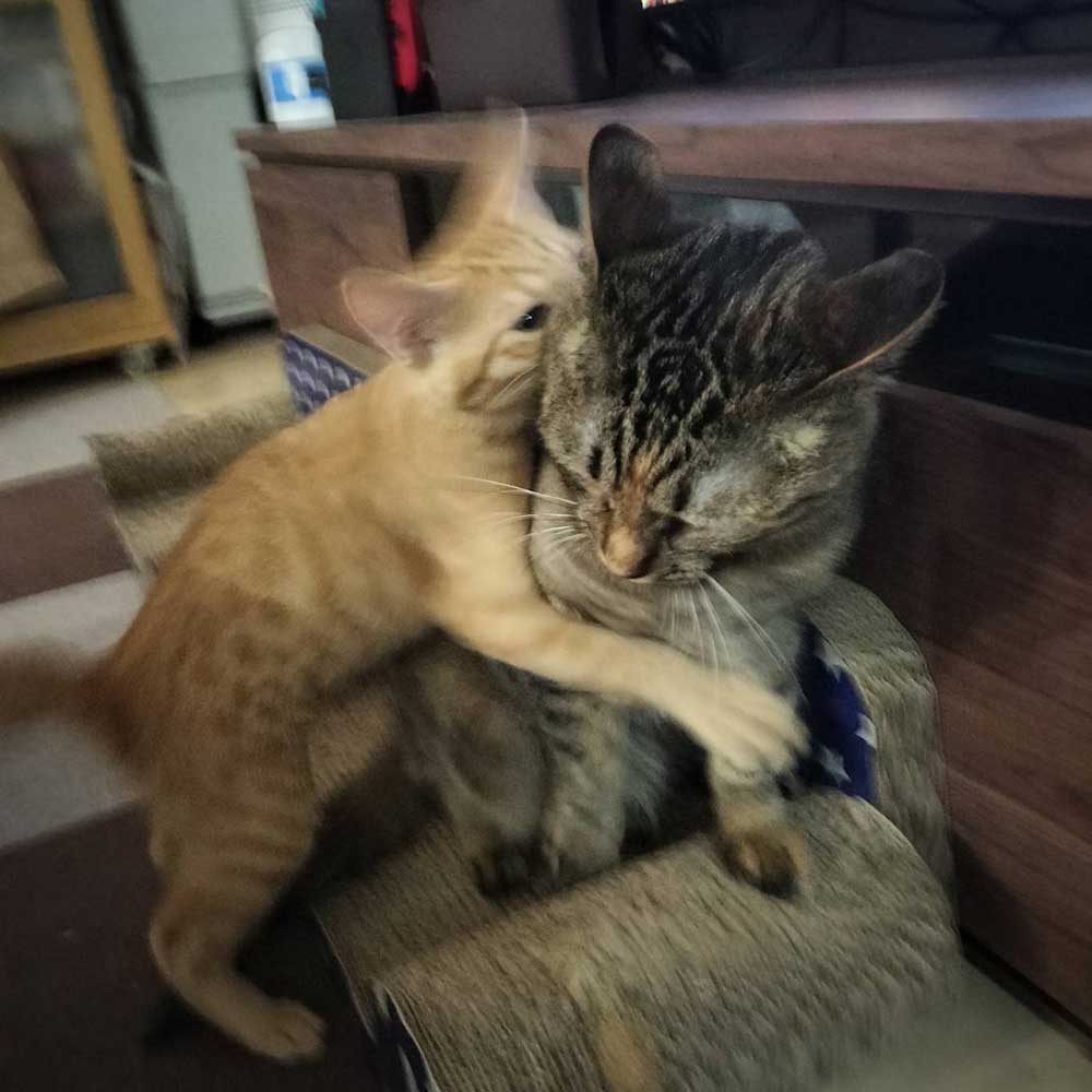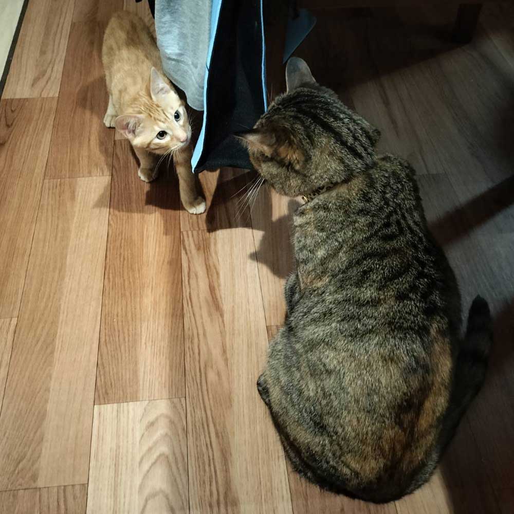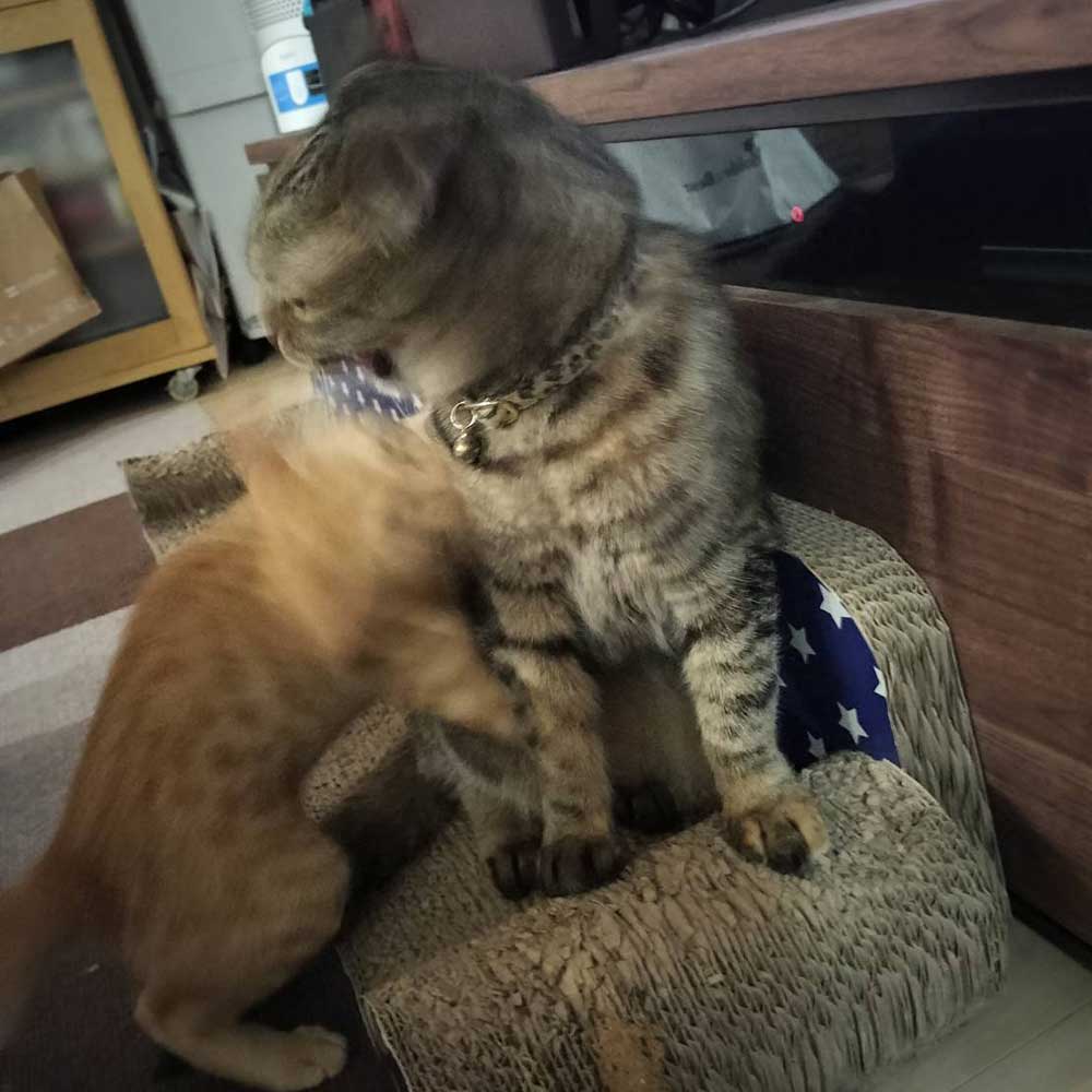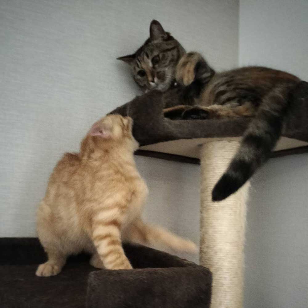 先住猫ちゃんには遊んで欲しくてガツガツ行きますが、先住猫ちゃんに拒否されてます。