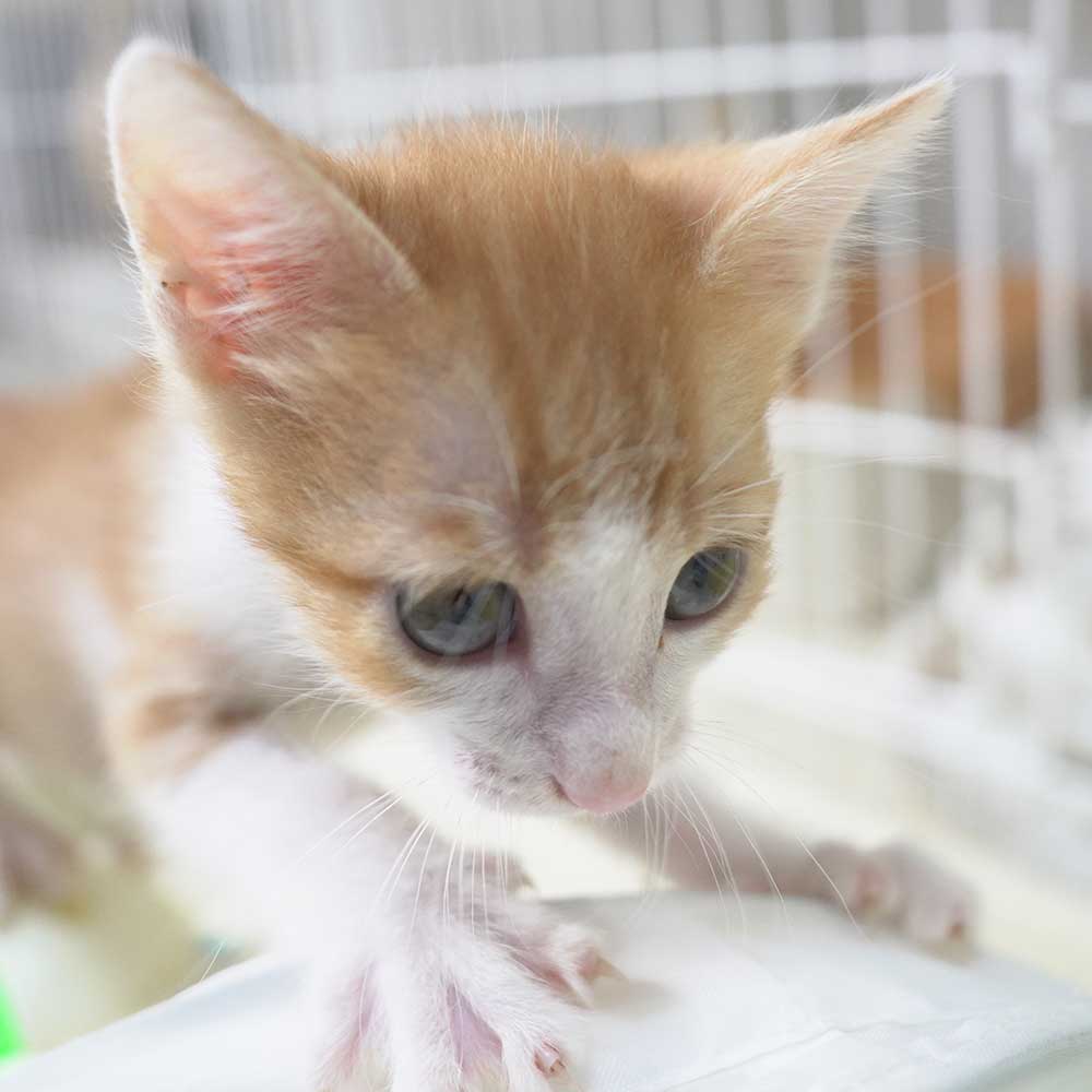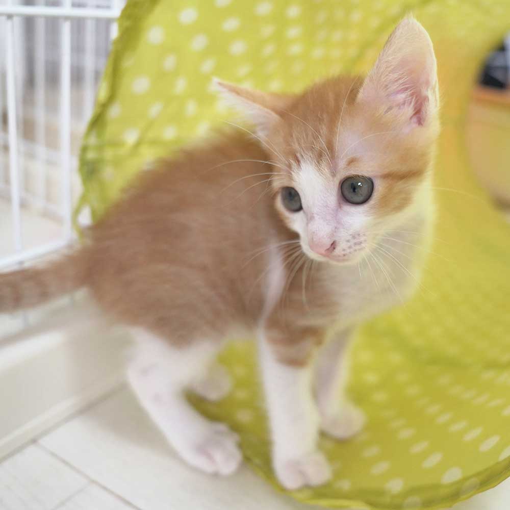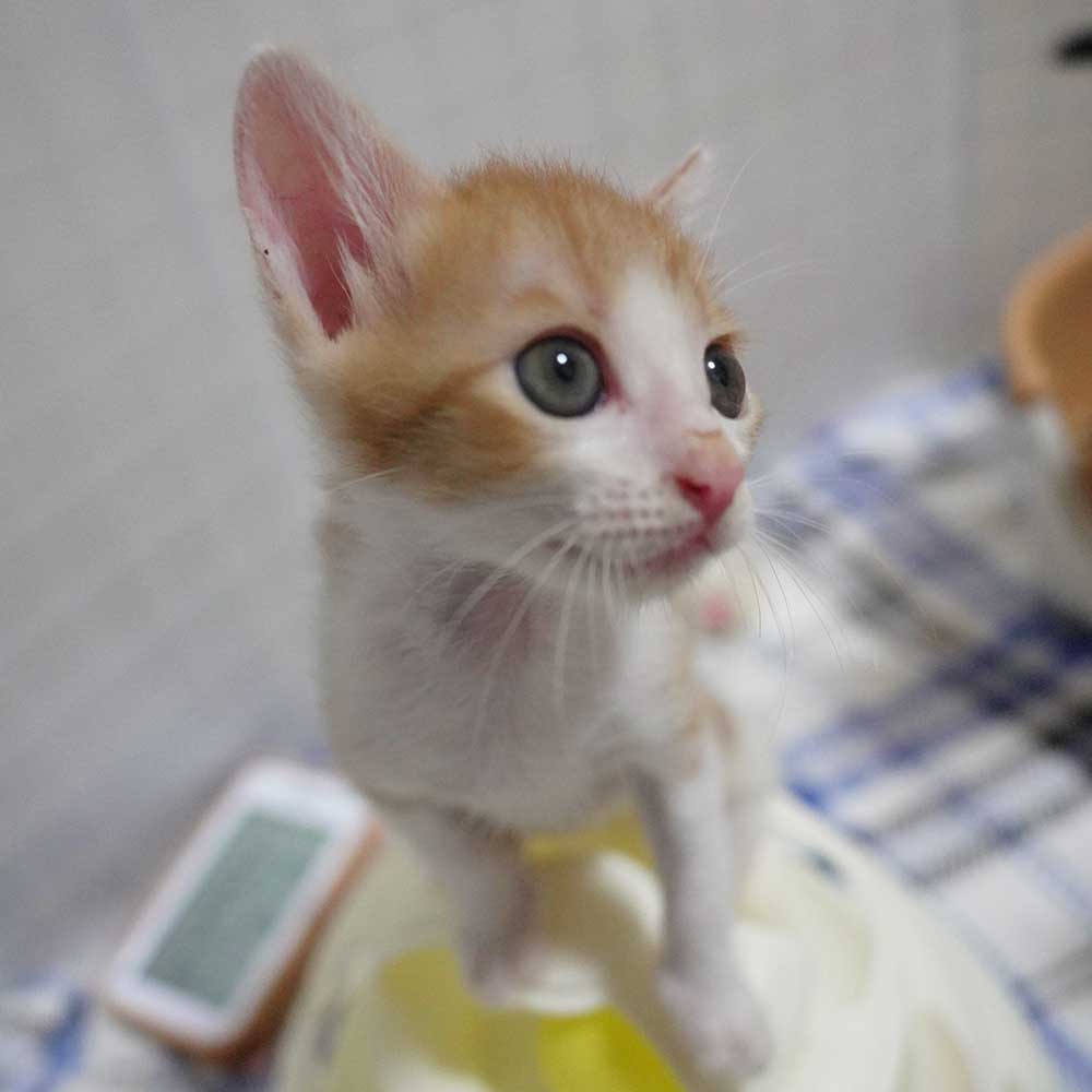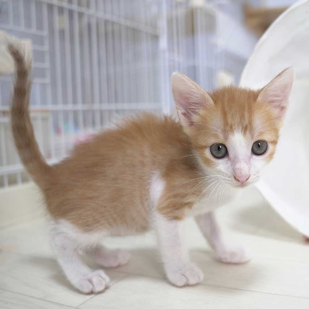 岸和田市のガレージで生まれてしばらくして母猫が帰ってこなくなり鳴いているところをガレージの大家の方が捕まえ保健所に連れていくと言っているところを阻止して保護となりました。
