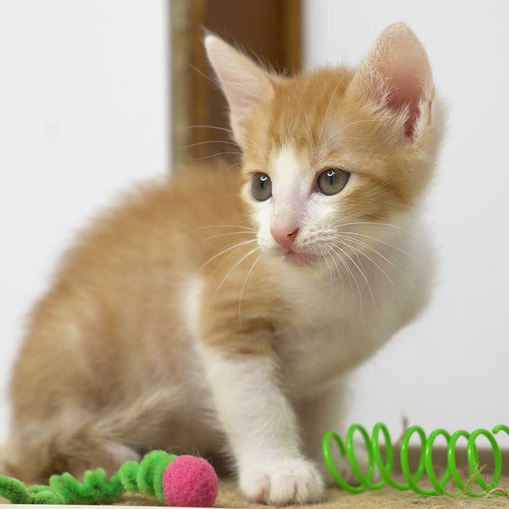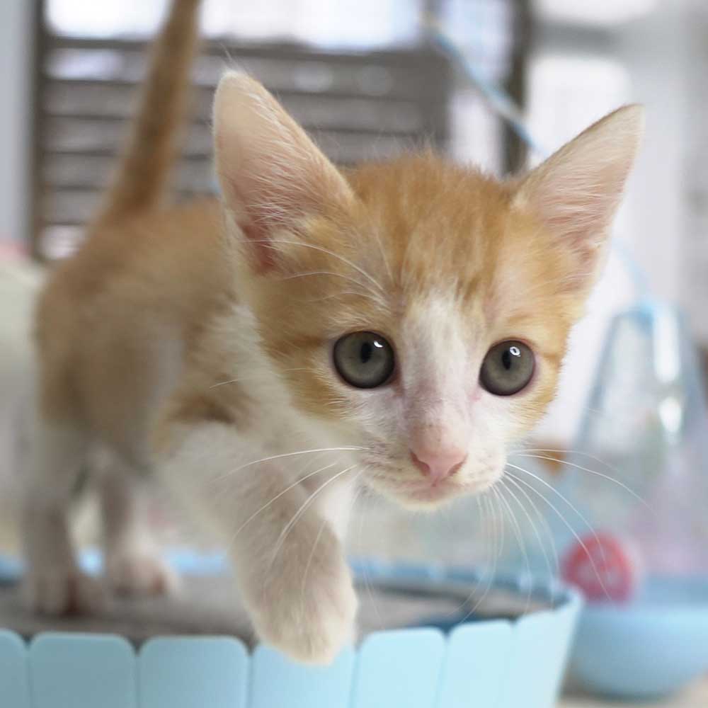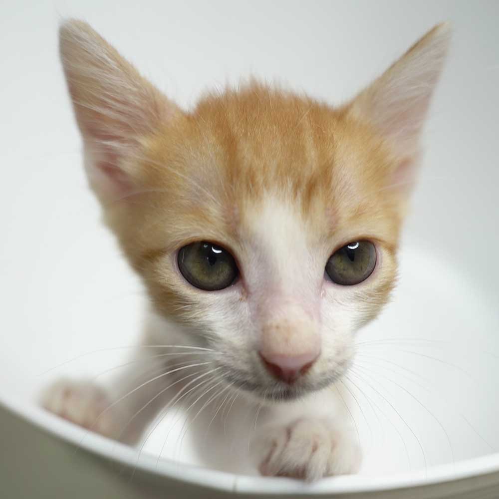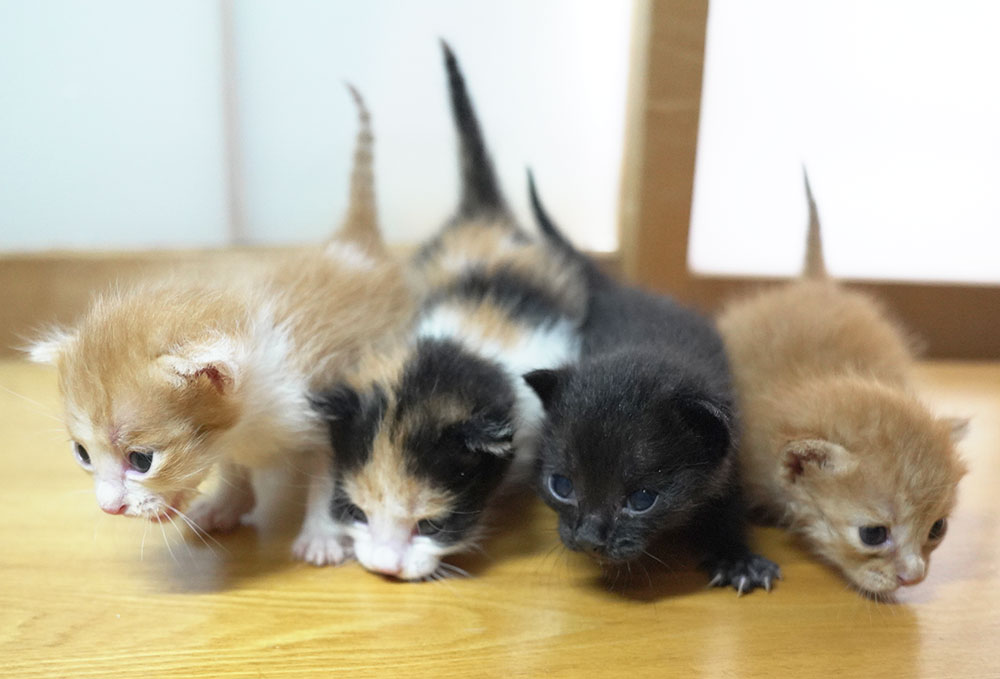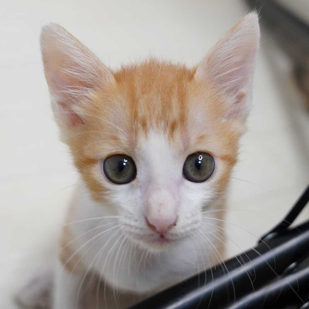 岸和田市のガレージで生まれてしばらくして母猫が帰ってこなくなり鳴いているところをガレージの大家の方が捕まえ保健所に連れていくと言っているところを阻止して保護となりました。