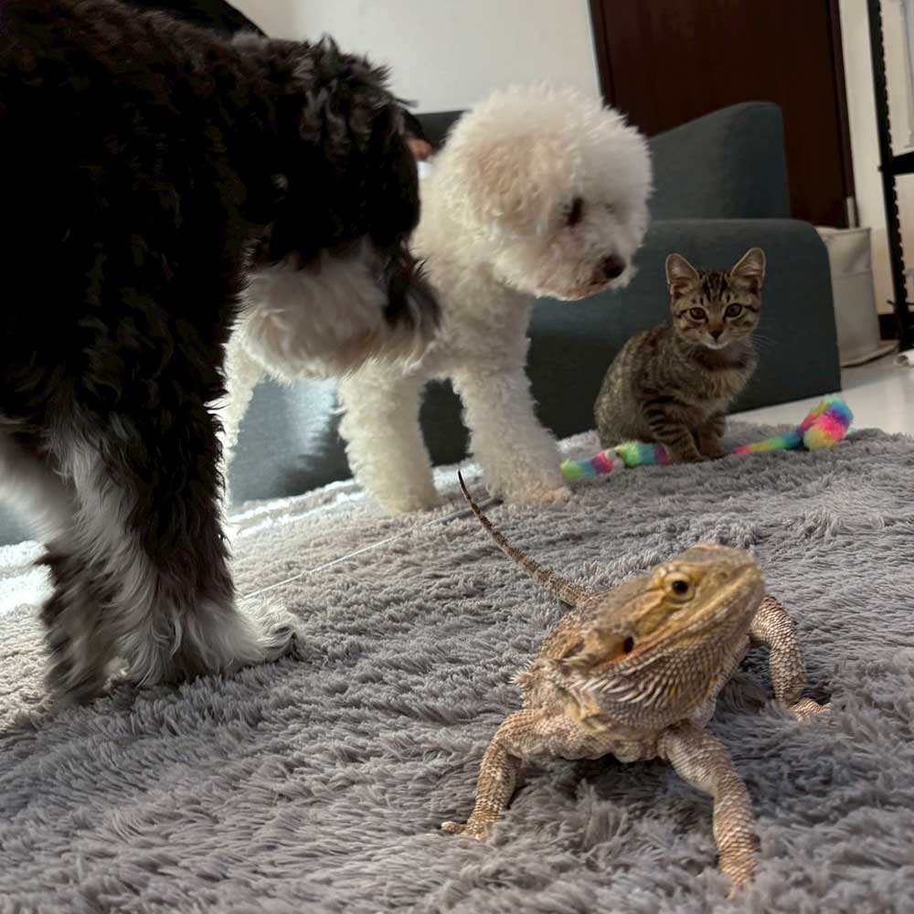 はじめははじめて見るワンちゃんなどにビックリしていましたが、今ではとっても仲良くしていて順応性が高かったようで良かったです~!!