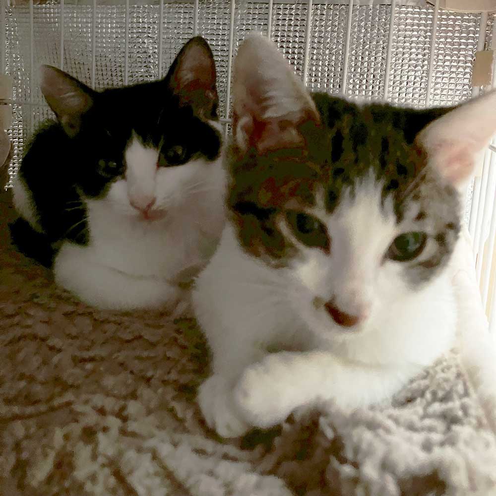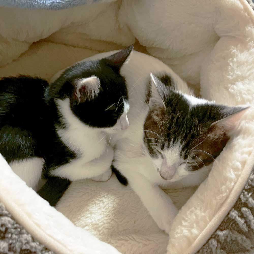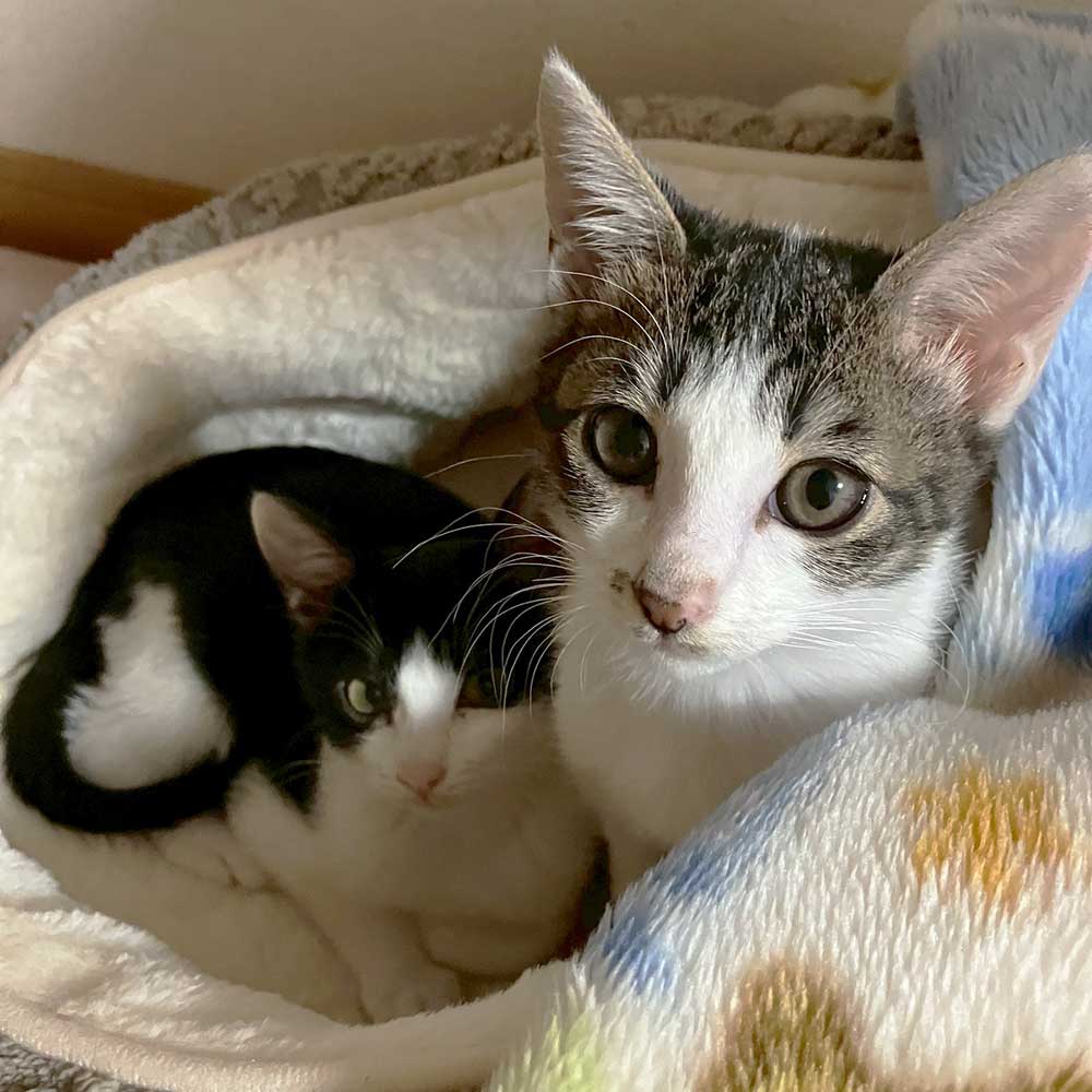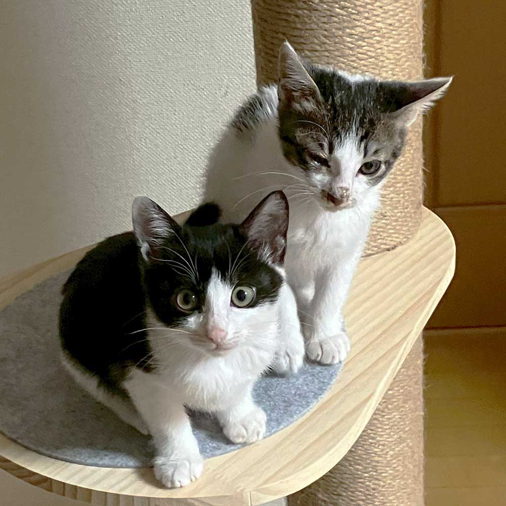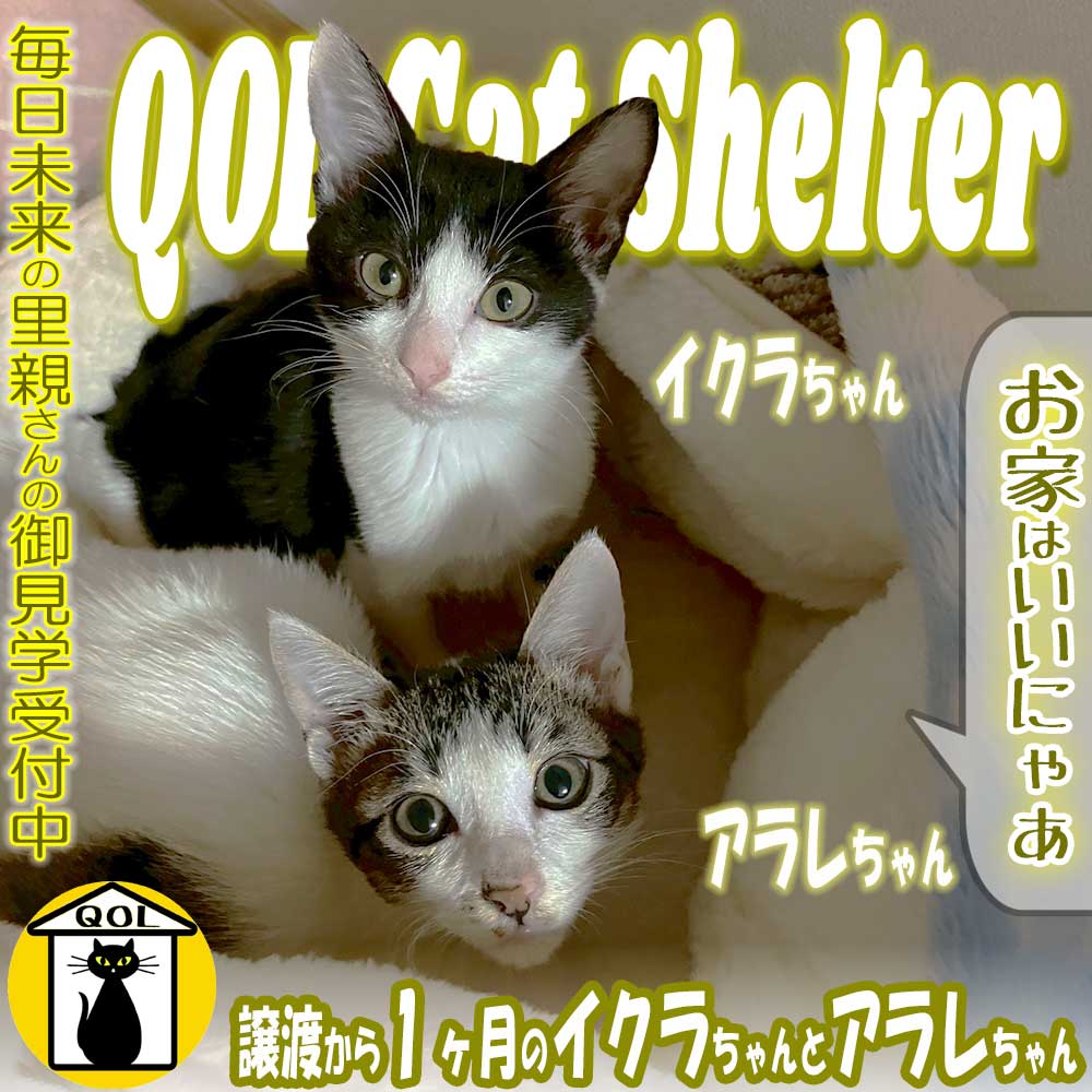 「ハチワレちゃんのイクラ、キジ白ちゃんのアラレが我が家に加わって毎日楽しく過ごしております♪