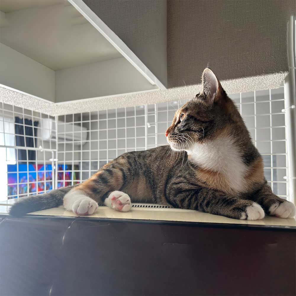 初めてのトリミングにも行きました。食洗機の上がお気に入りなので入ってこないように対策してますが隙を見て入ってきてドヤって乗ってます😂笑