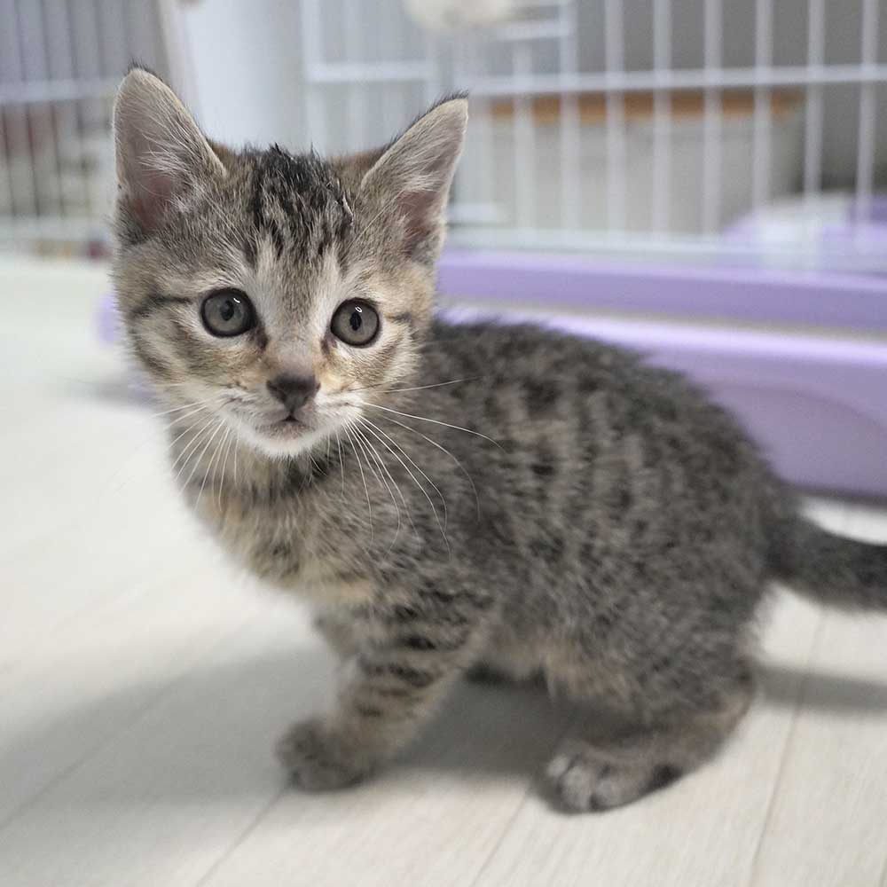 ある日から母猫が帰ってこなくなり、お腹を空かせて鳴いているところを保護です。