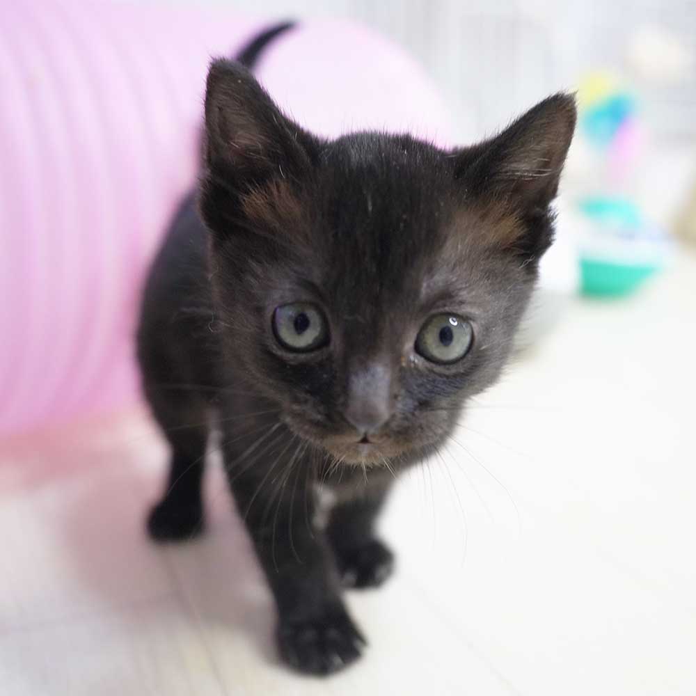 ある日から母猫が帰ってこなくなり、お腹を空かせて鳴いているところを保護です。