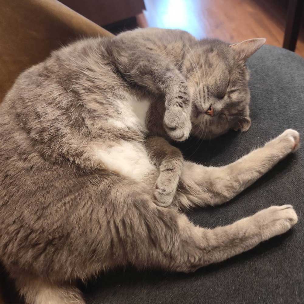 寝る前と朝にお腹に乗ってなでなでを催促することと、帰宅後に膝の上でくつろぐのが毎日の日課になっています。