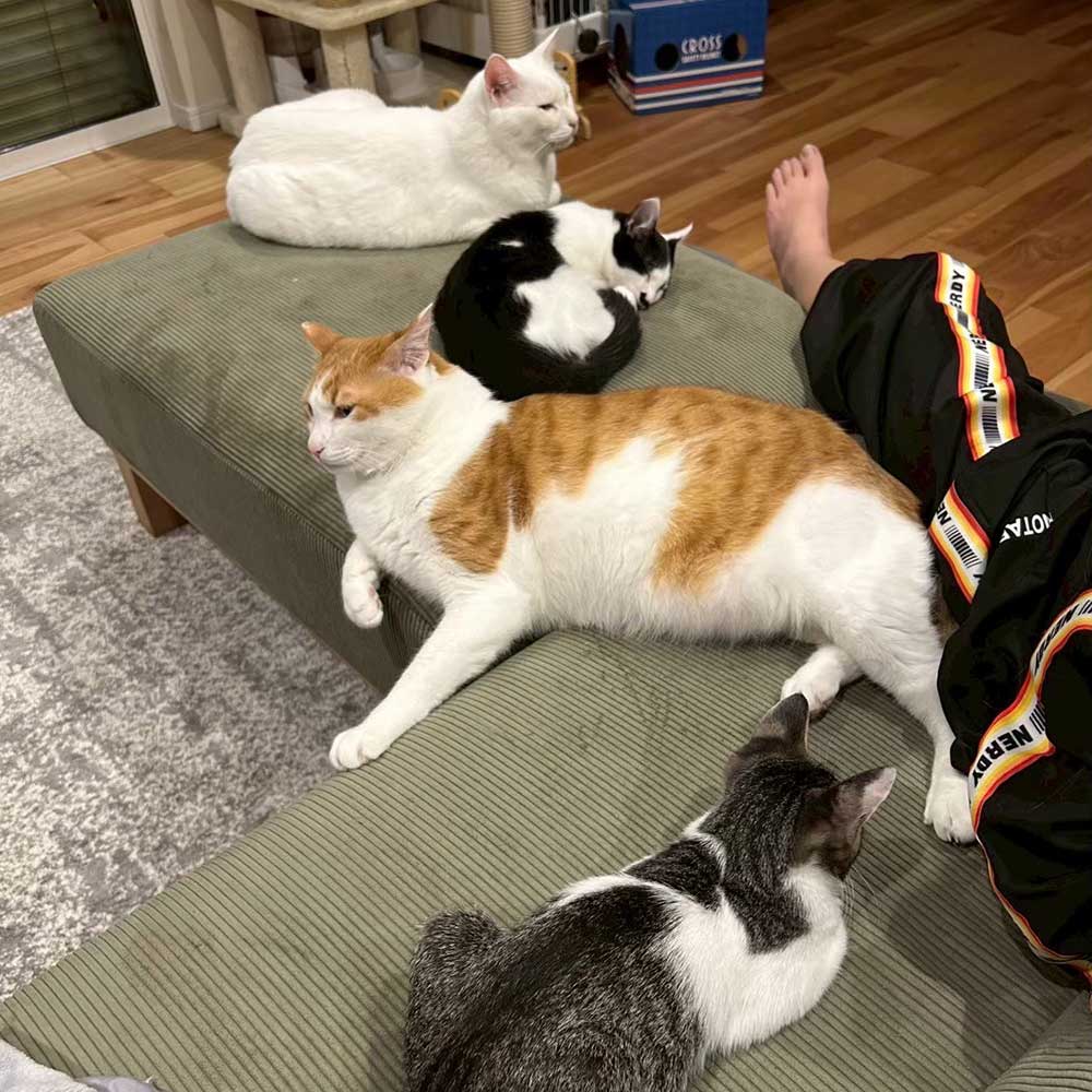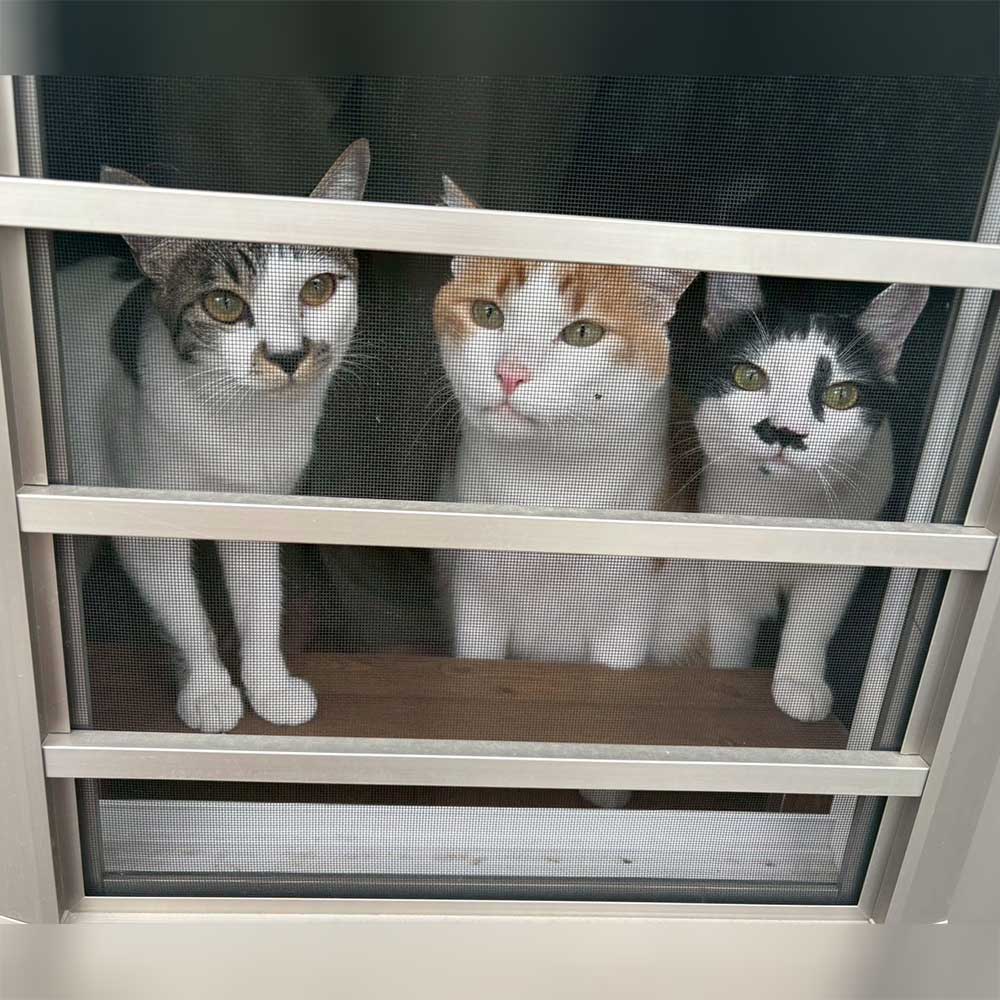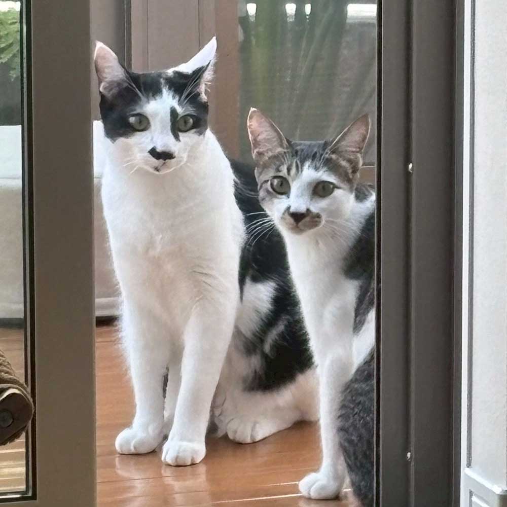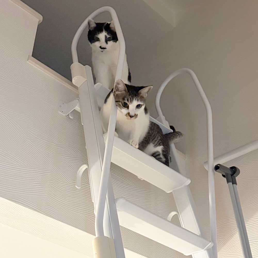 先住猫ちゃんたちとも仲良く、家中を走り回る元気さで何よりですね!
