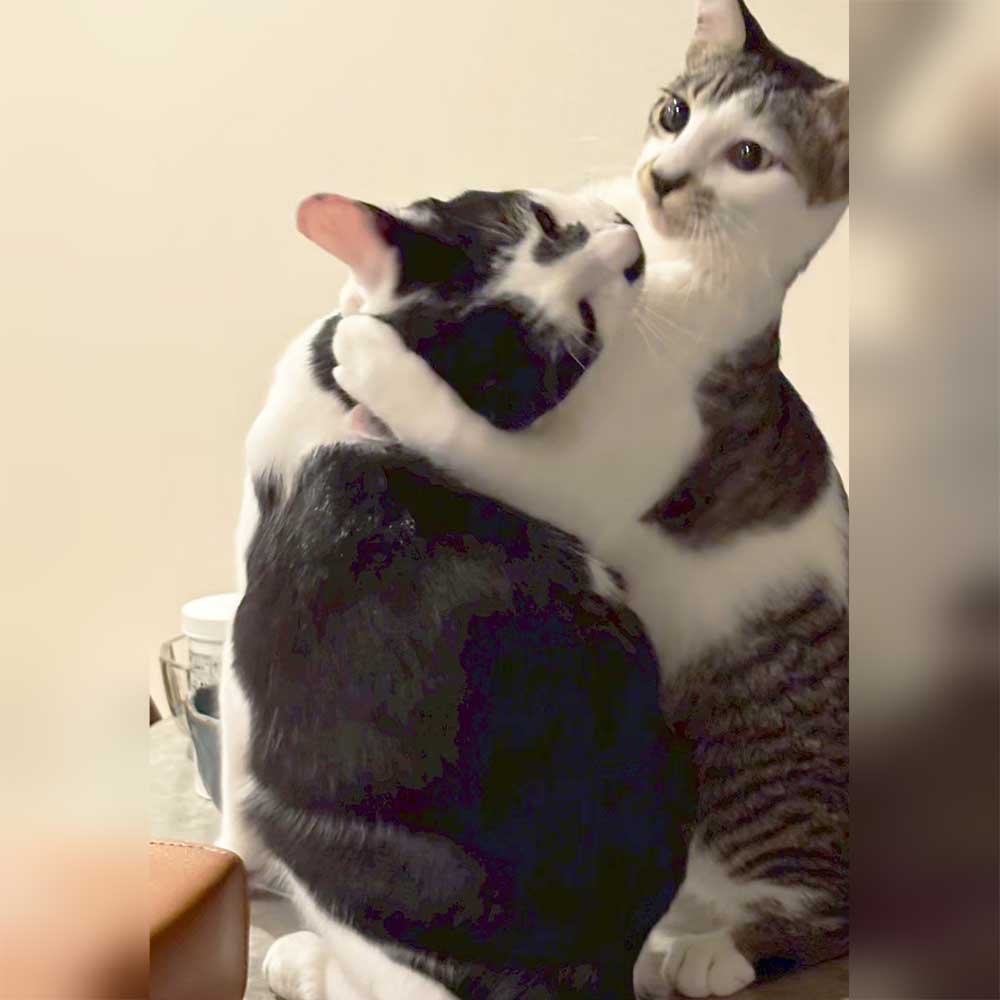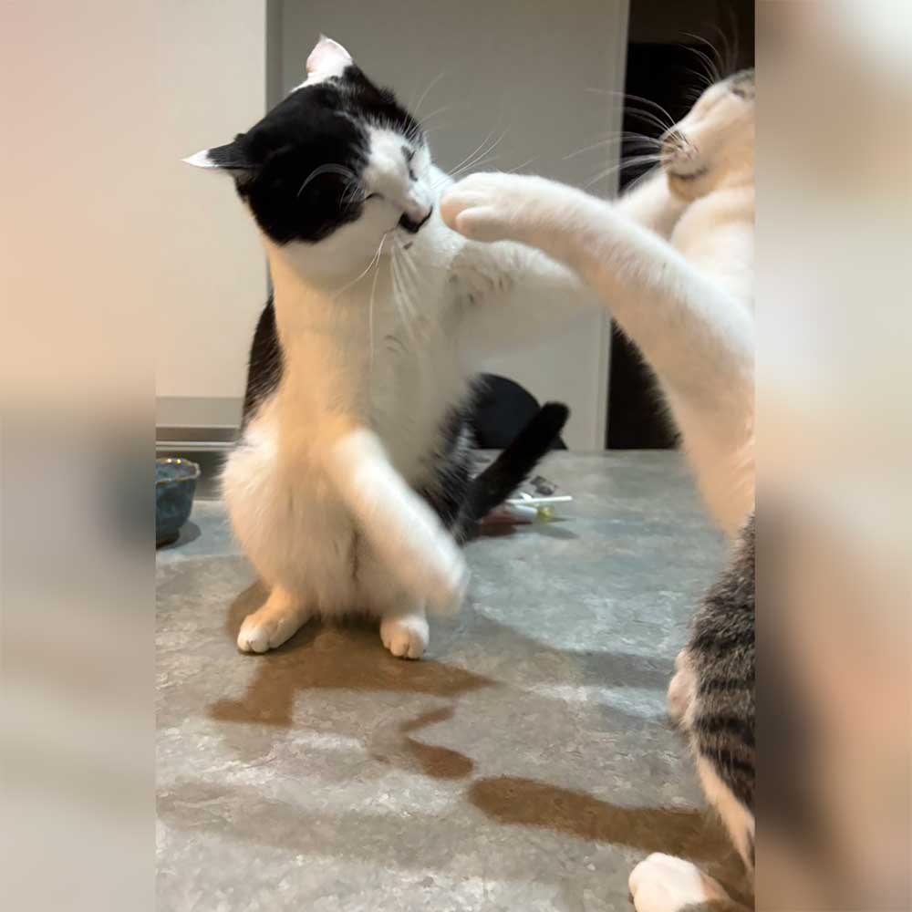 先住猫とも身体を舐めあったり、猫パンチをくらったり、関係性もかなり落ち着いてきました
