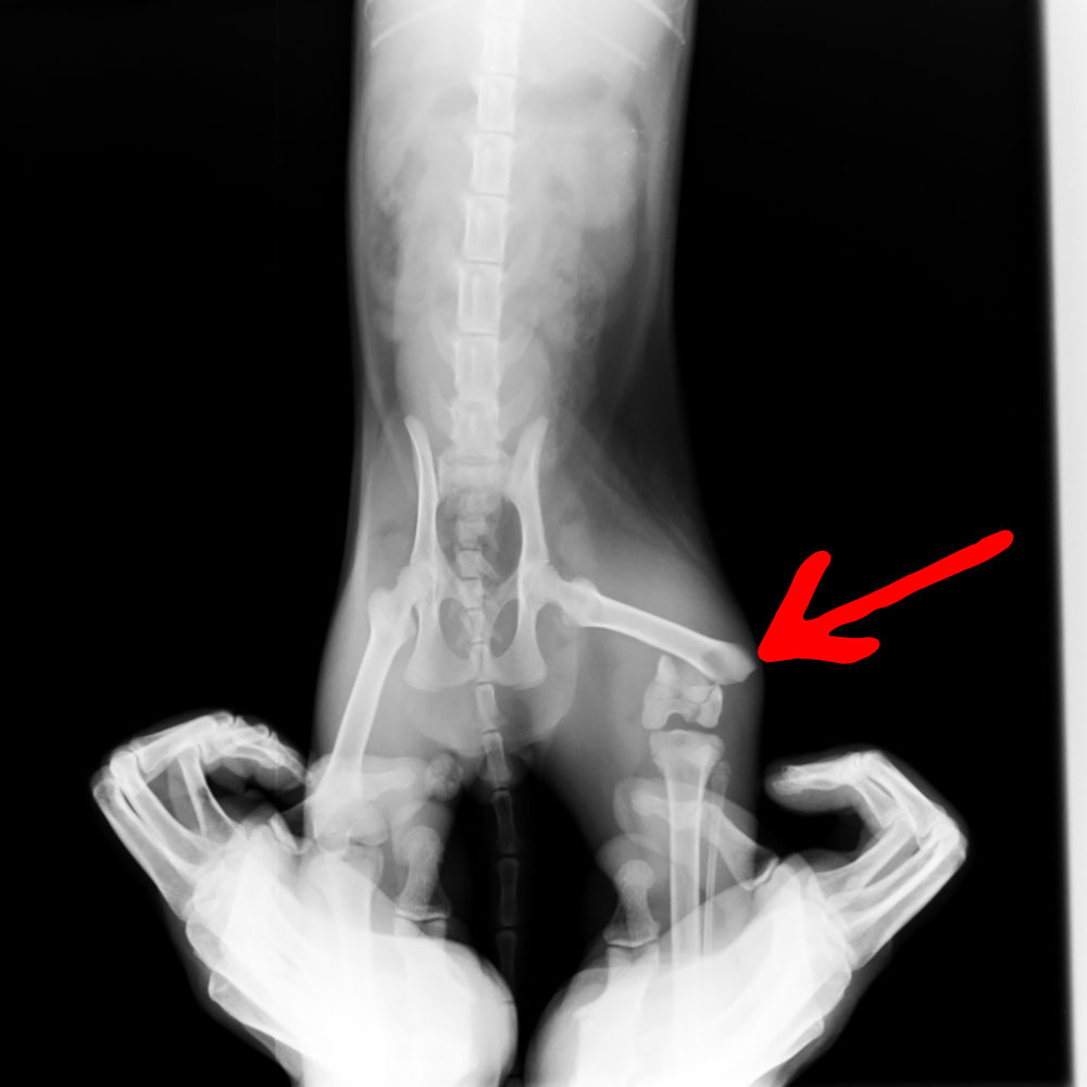 左足大腿骨が完全にポッキリ折れていて、手術となりました。
