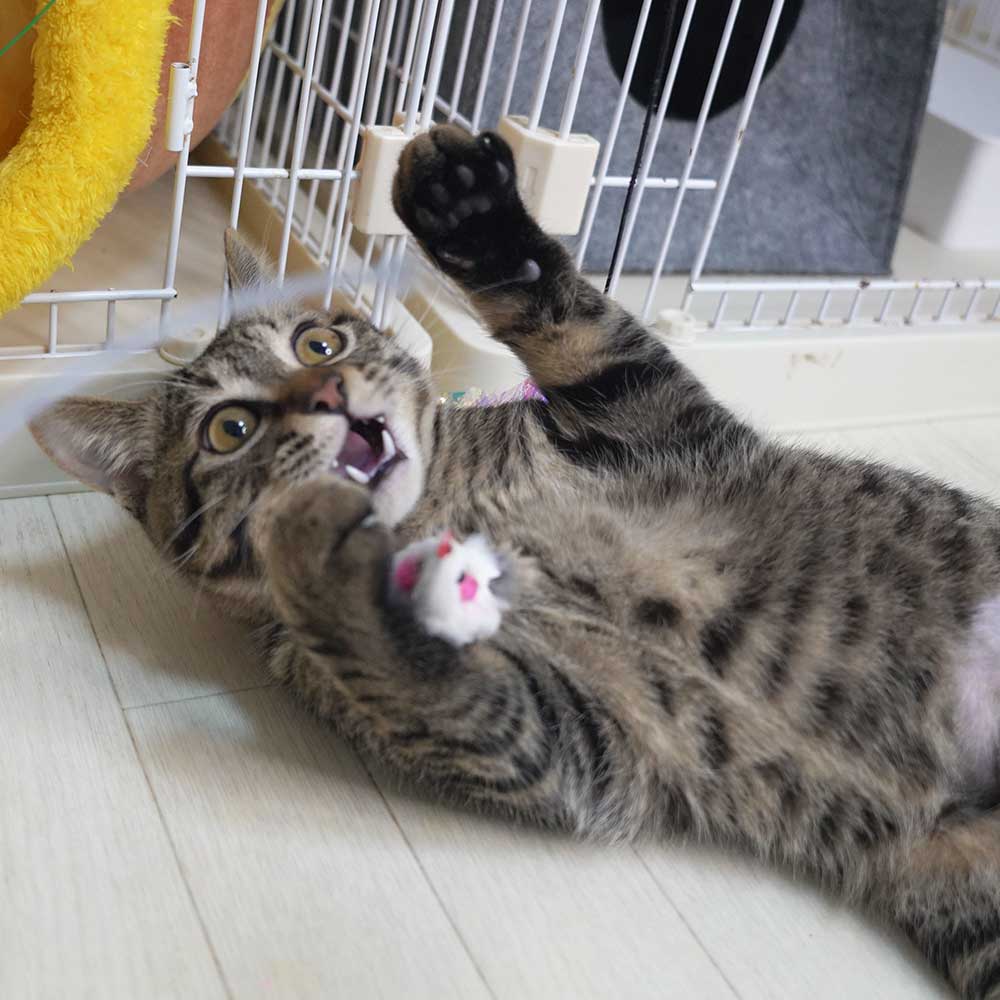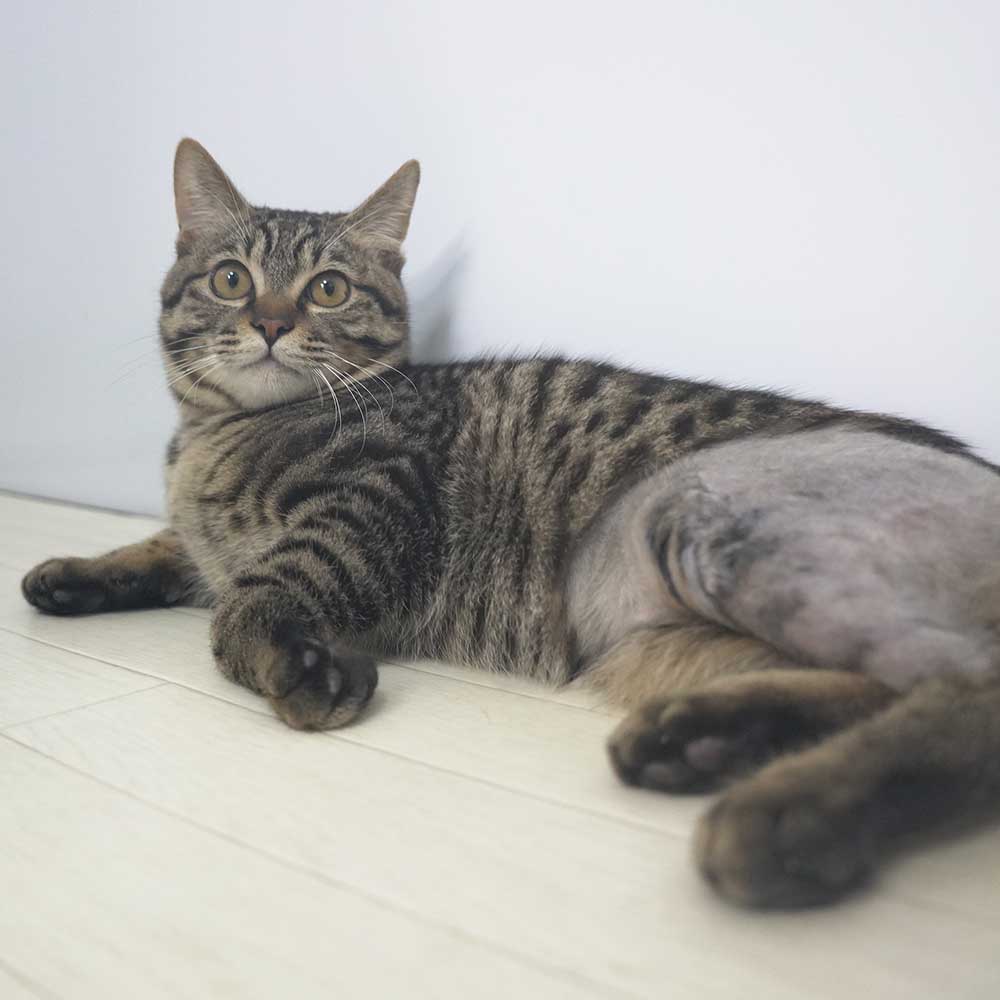 住宅街で骨折して動けなくなり倒れて鳴いているところを保護。