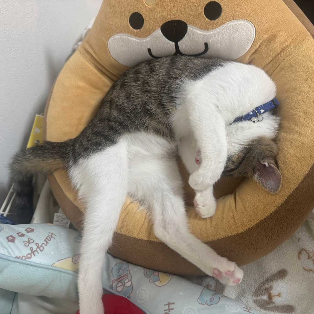 ぬくぬくしてる姿を見ると今年は寒波も厳しかったので保護してもらえて我が家へ来てくれて本当によかったと思います✨」
