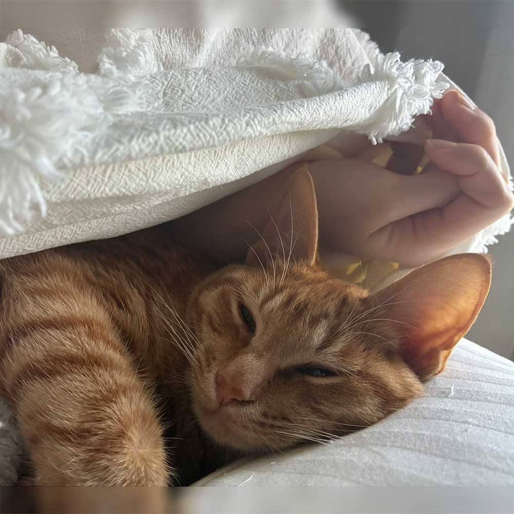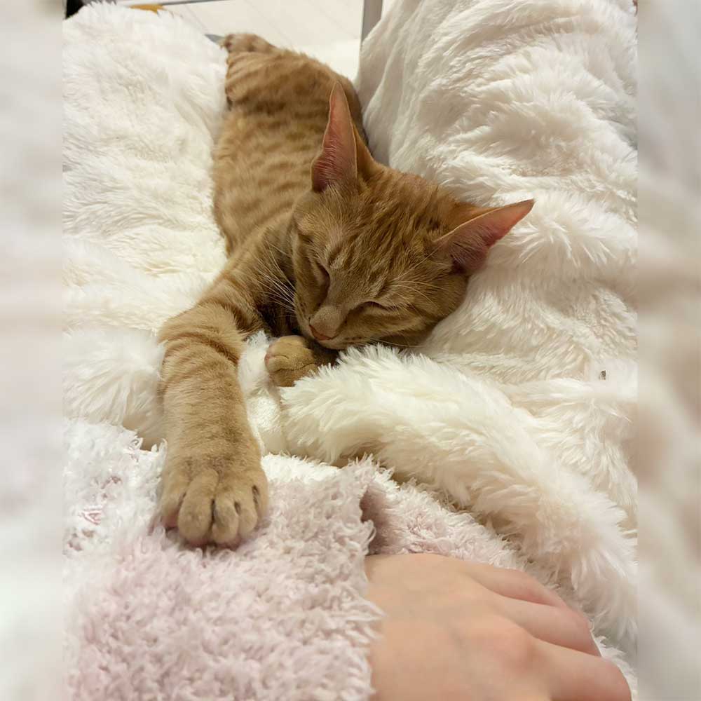甘えん坊具合はどんどん増していて、最近は寝る時布団の中に入り込んできて私の腕枕で一緒に寝てます💕