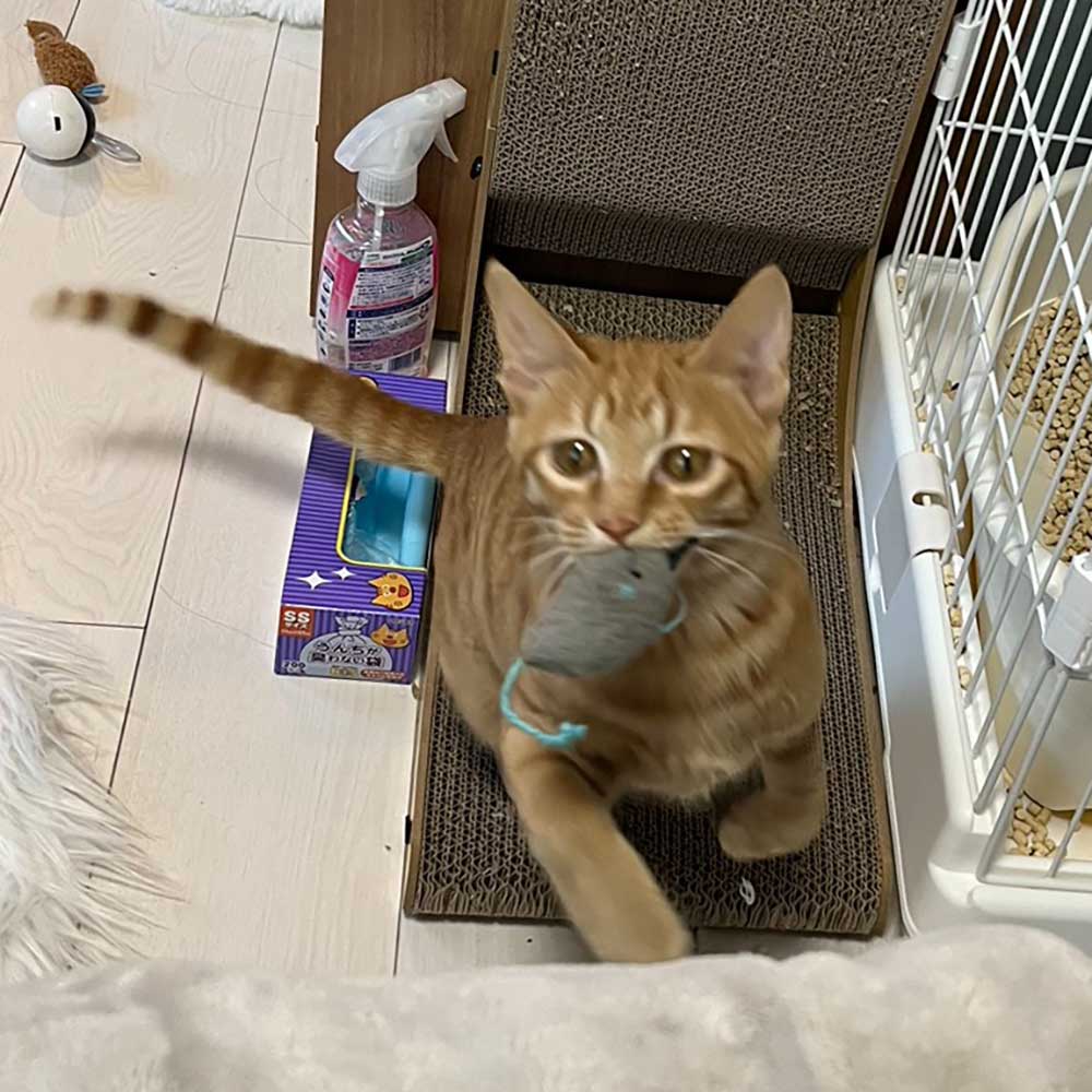 活発さも増していて、お気に入りのネズミを投げるとすぐに取ってきて私のところに持ってきてくれます。そんな姿はまるでワンちゃんのようです💕